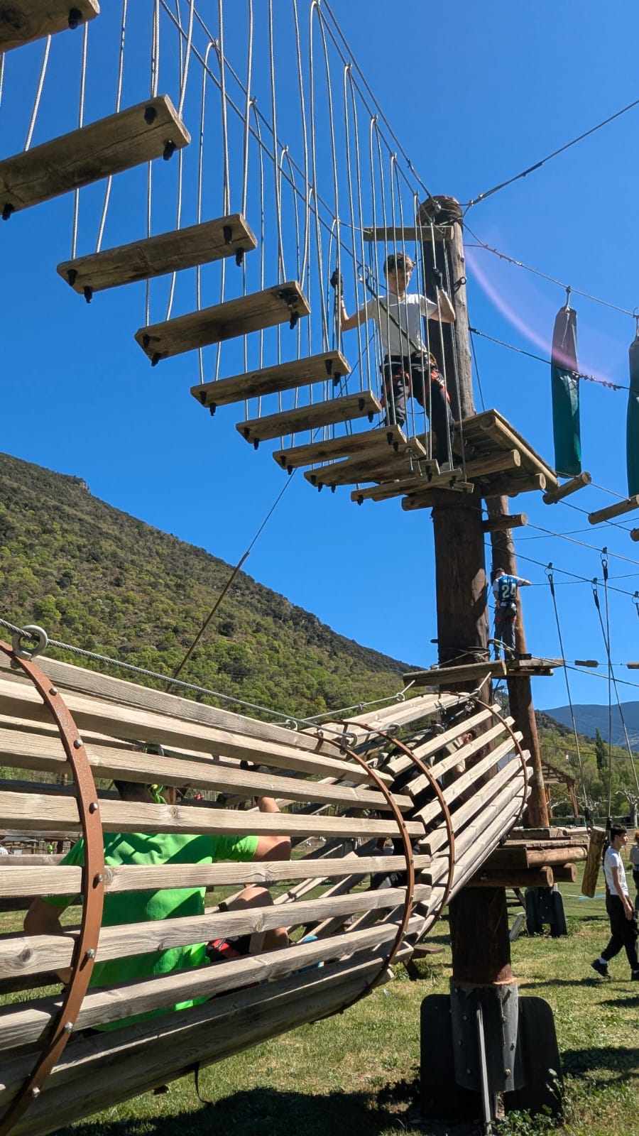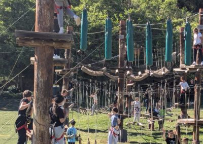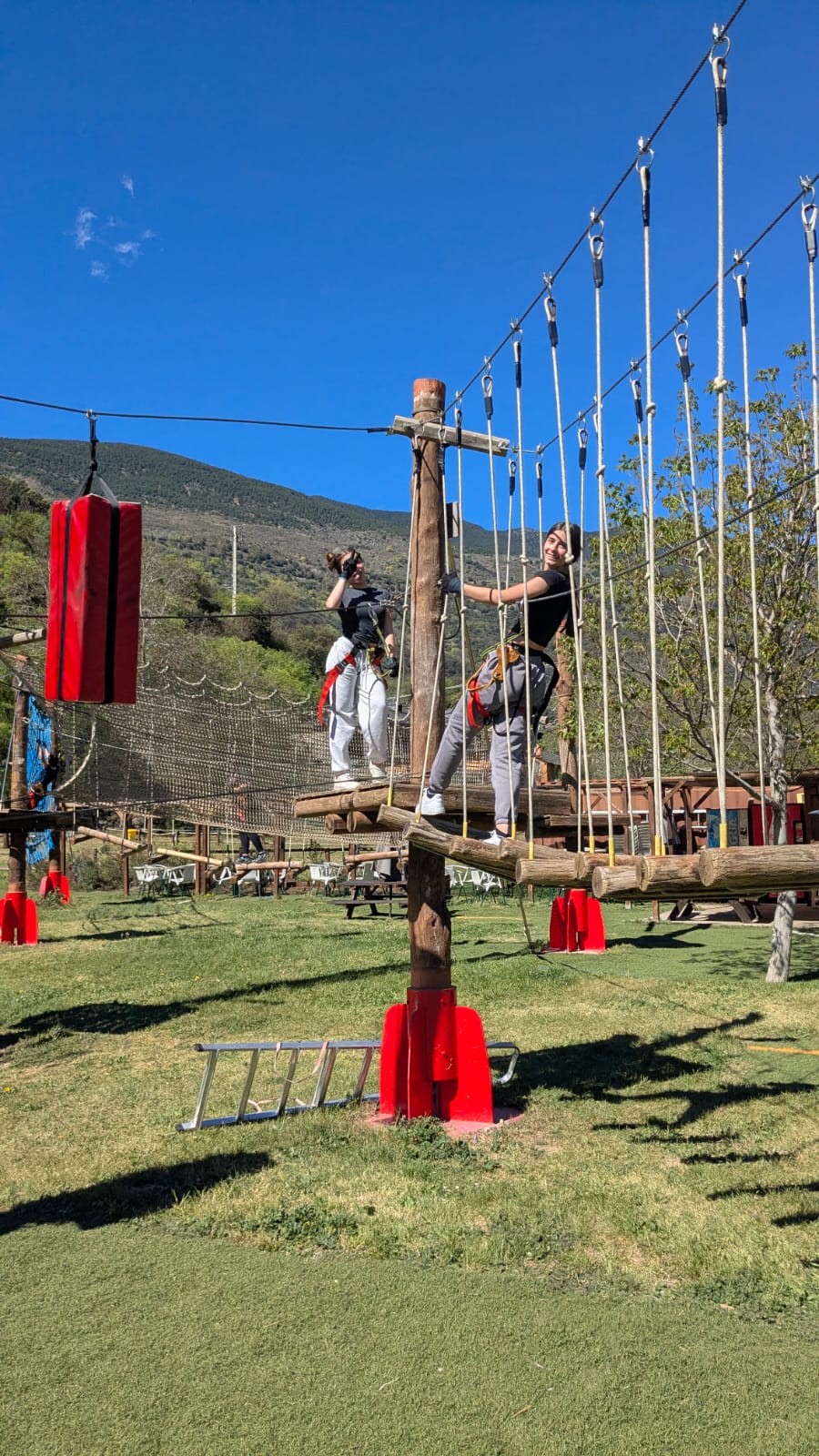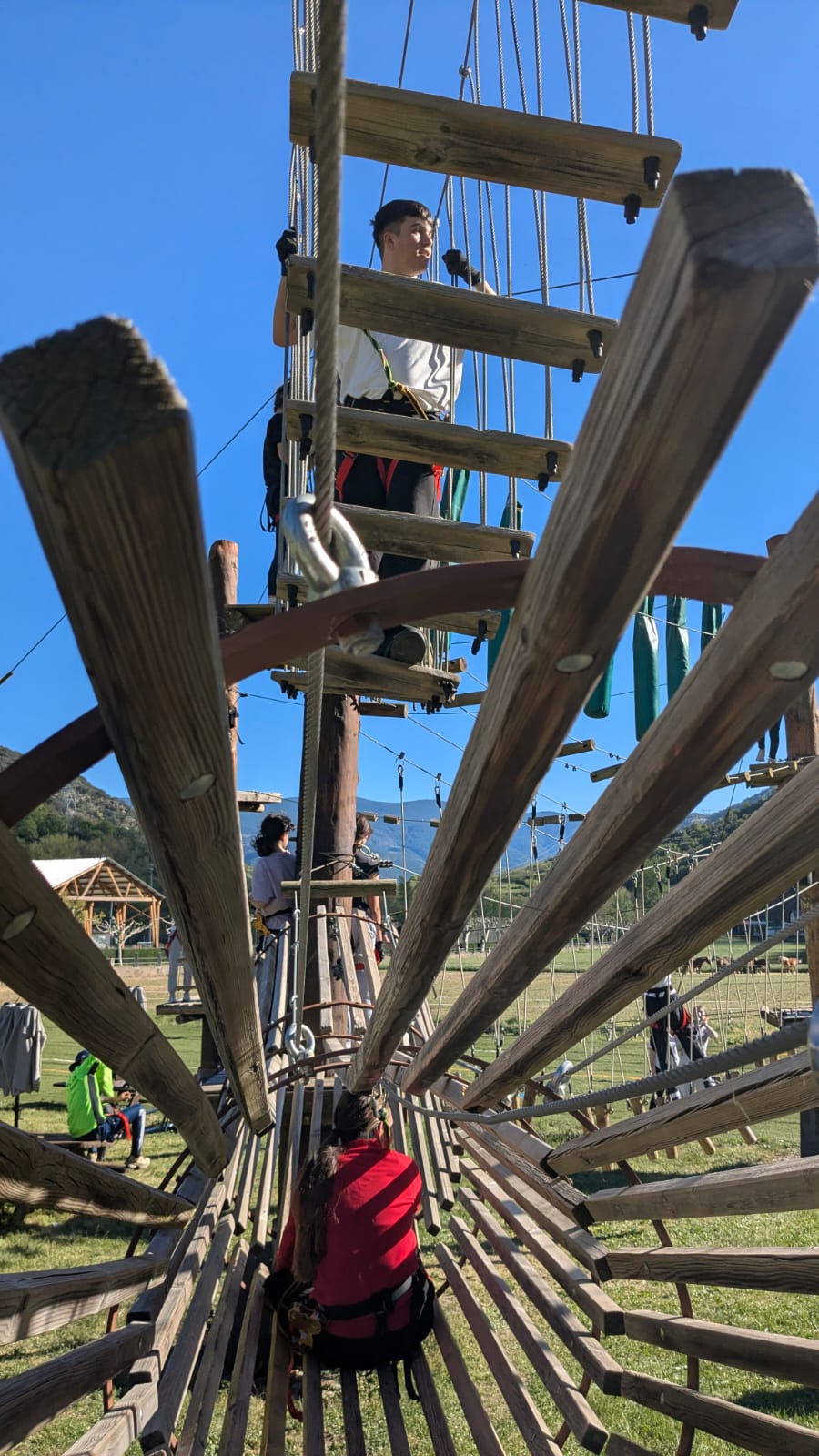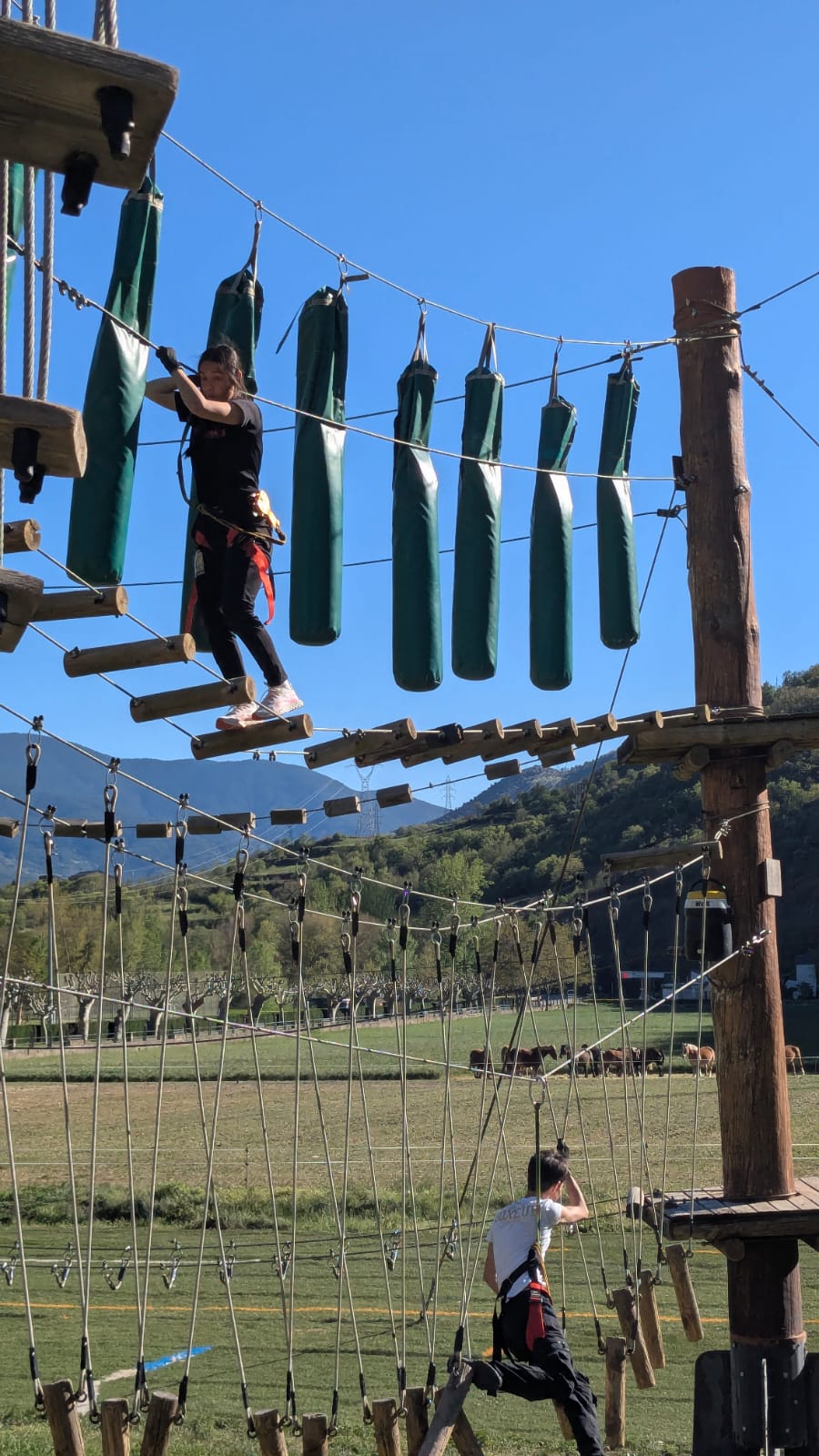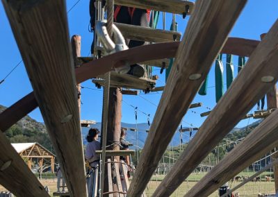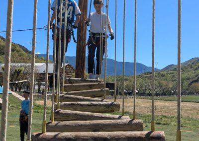 La sortida va començar amb una jornada plena d’adrenalina en un bosc vertical on van posar a prova l’equilibri, la coordinació i la seva valentia (ponts penjants, passarel·les de fusta, xarxes, lianes i tirolines). Van passar la nit a l’alberg de Rialp.