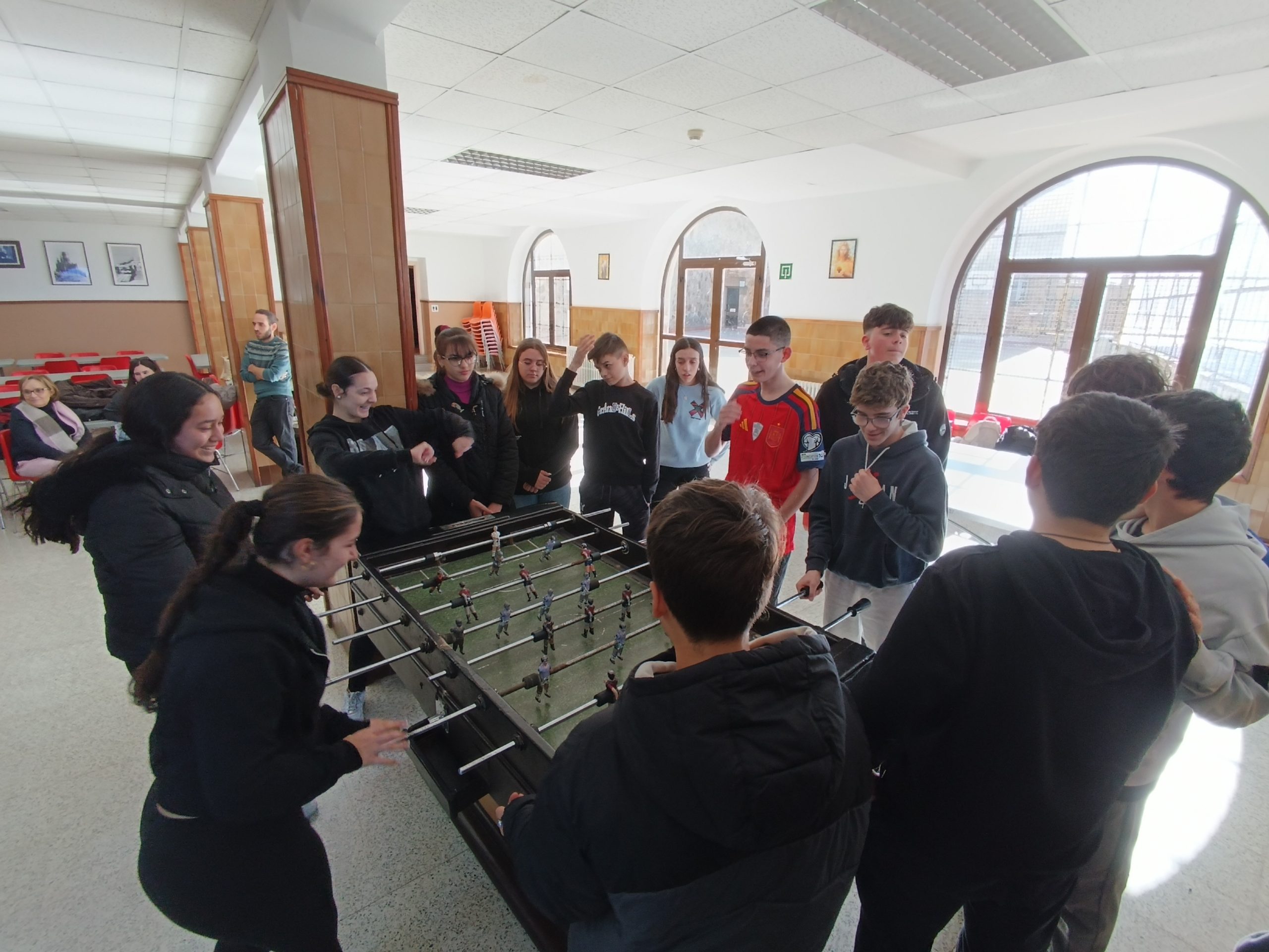 Els alumnes d’FP i Batxillerat també van celebrar aquests dies tan especials. Al llarg del matí de divendres, es van disputar les semifinals i finals dels tornejos de Don Bosco de futbol, bàsquet, ping-pong, futbolí i vòlei, fomentant l’esperit esportiu i la participació. Paral·lelament, es van dur a terme diversos tallers a les aules de l’edifici d’FP, com el bingo, el Just Dance, el karaoke, jocs de taula i un taller d’estampació, que va tenir molt d’èxit.